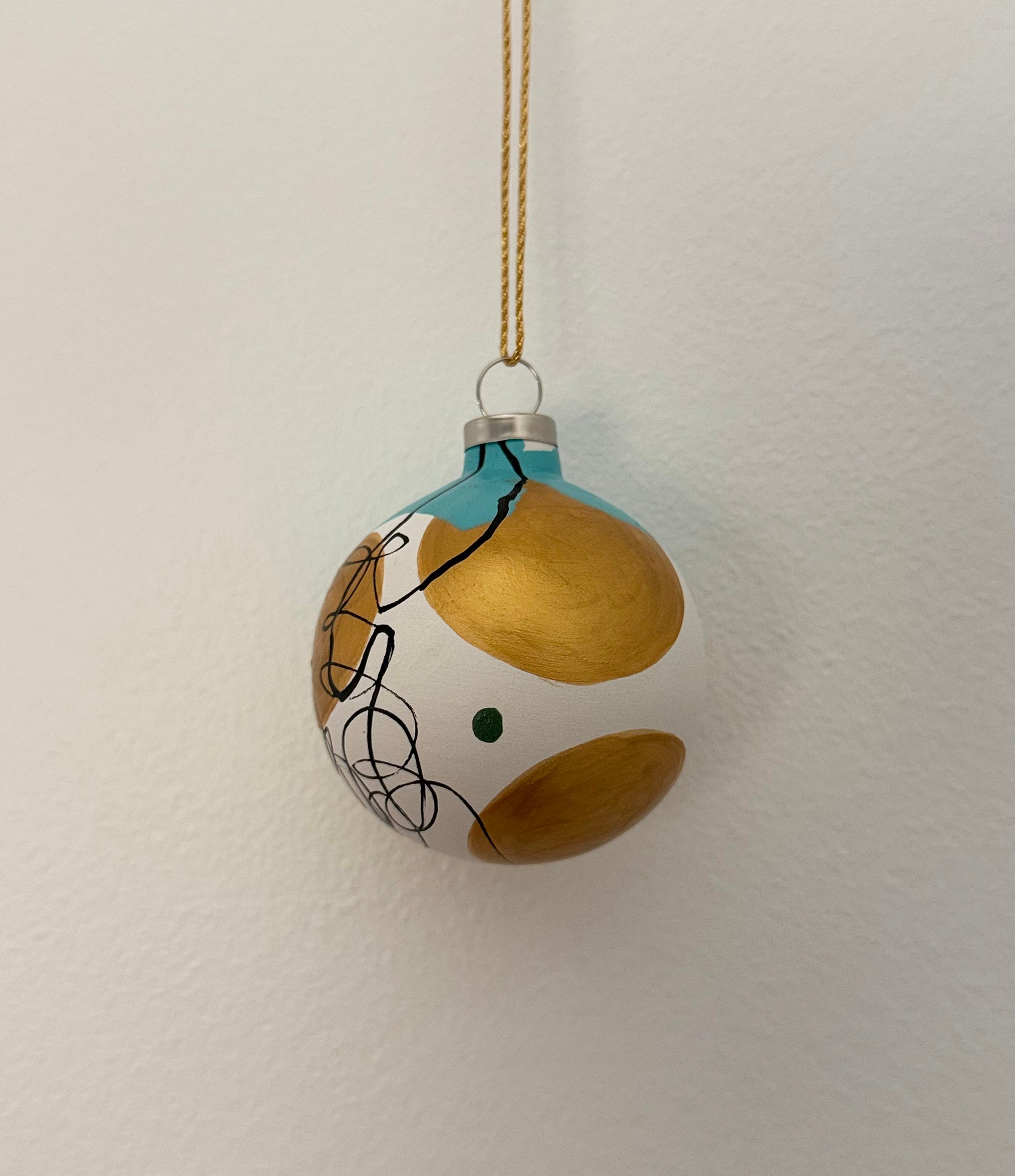 Moderne julekugler der gør dit juletræ til noget særligt. Farverne er med et moderne og livligt udtryk i kombinationen guld og turkis. Unikke små kunstværker til den moderne juleudsmykning