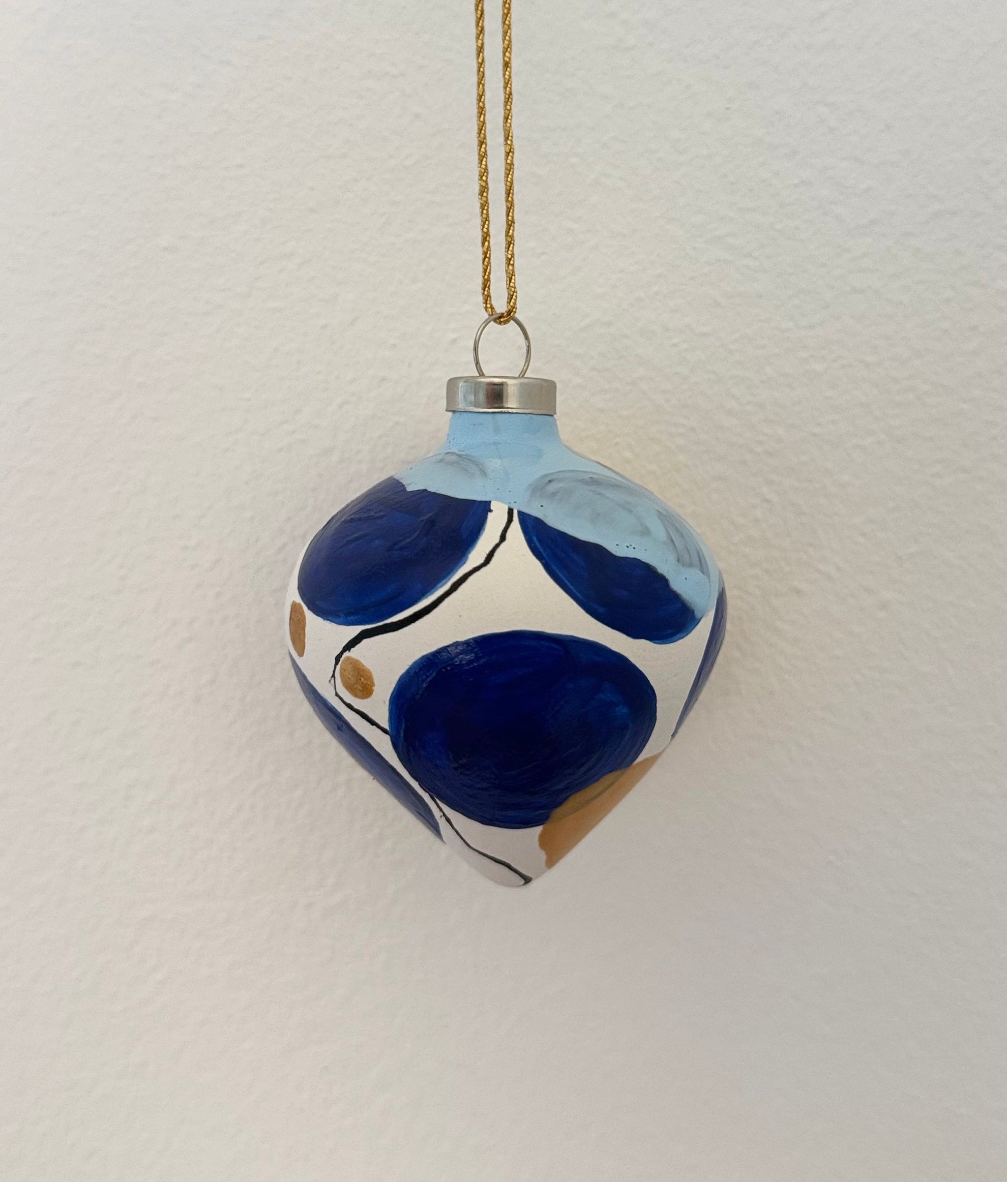Moderne julekugler der gør julen til noget særligt . Kombinationen af farven guld og kongeblå, gør julekuglerne eventyrlige og har en luksuriøs effekt på træet.