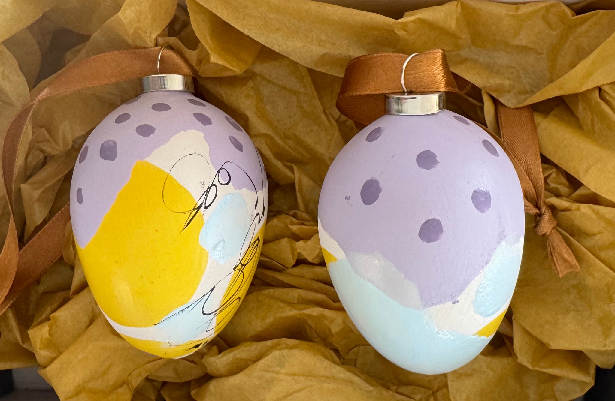 Pakken består af et sæt med 2 stk. håndmalet påskeæg