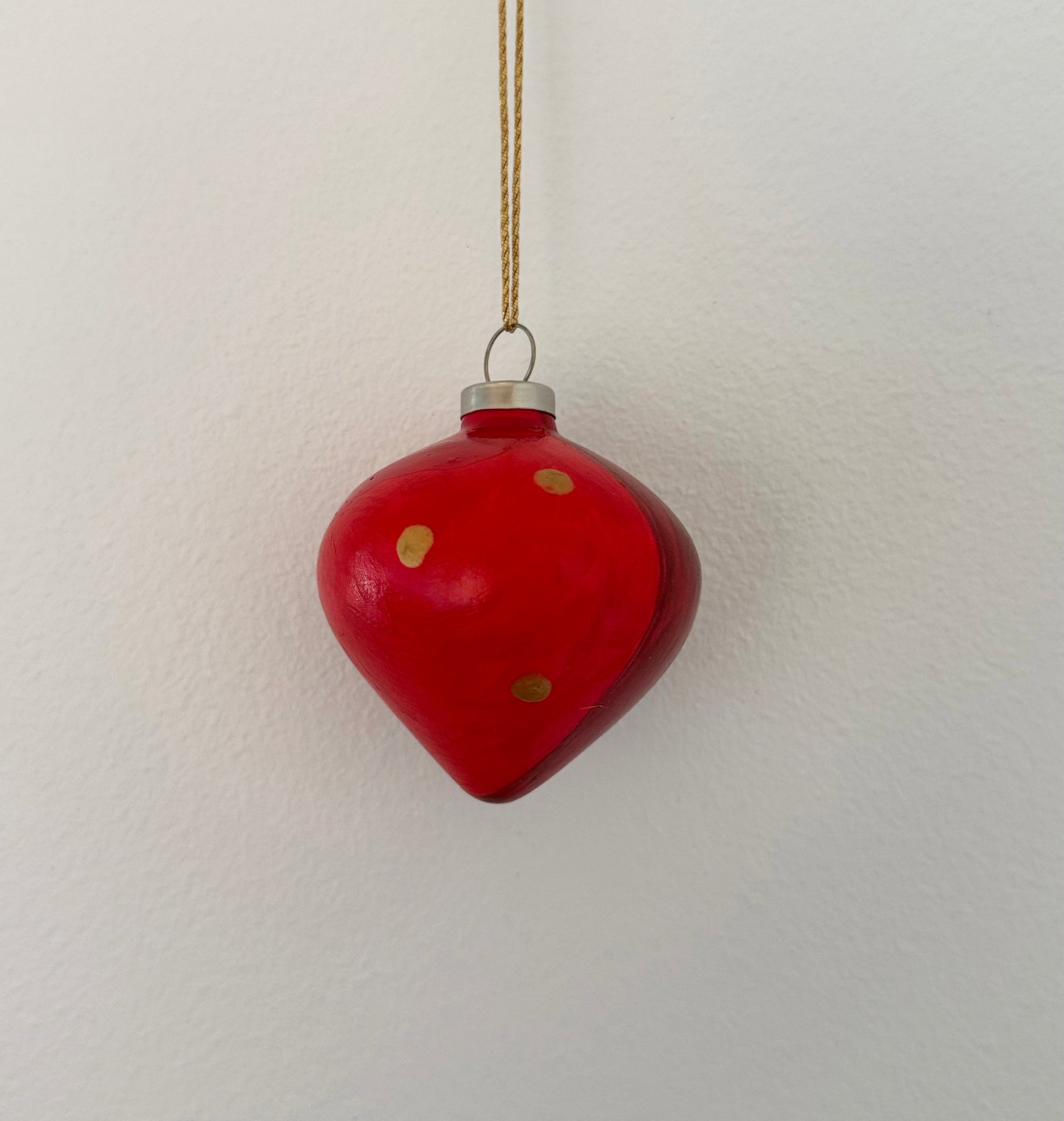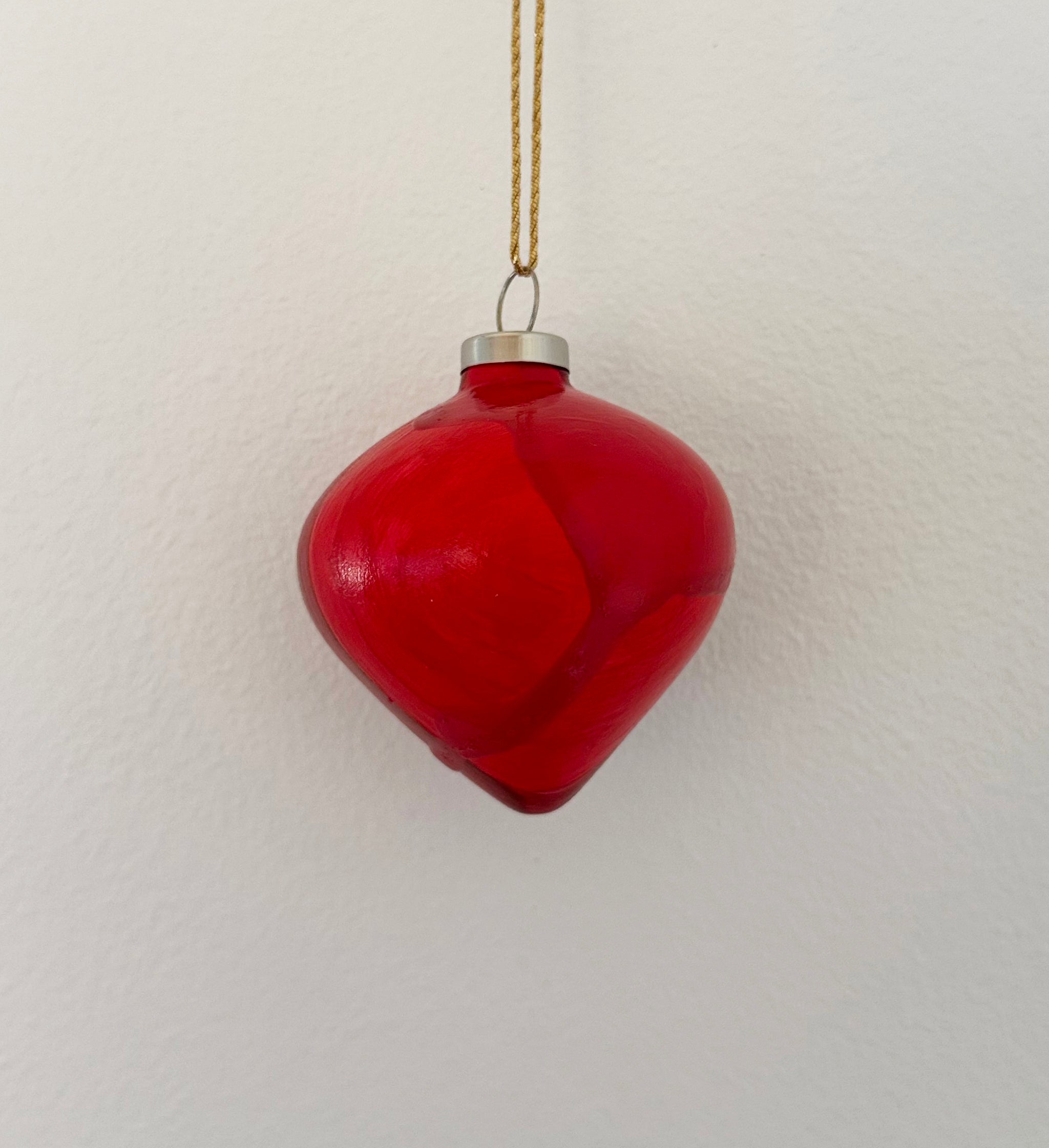 Moderne julekugler i røde nuancer. Pynt hjemmet og skab en varm og hyggelig atmosfære. Håndmalet unikke små kunstværker til den traditionelle juleudsmykning.