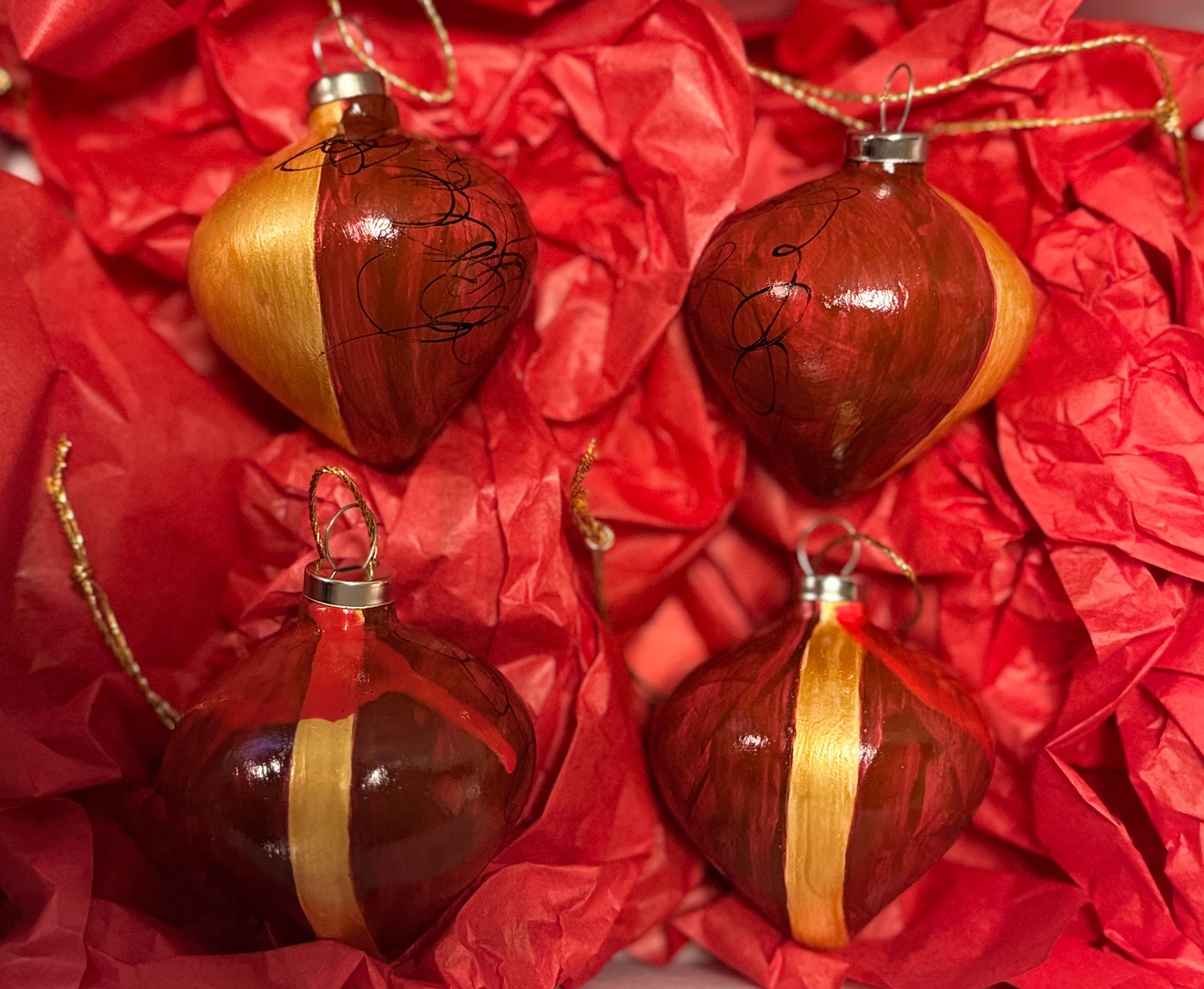 Pakken består af et sæt med 4 stk. håndmalet julekugler.