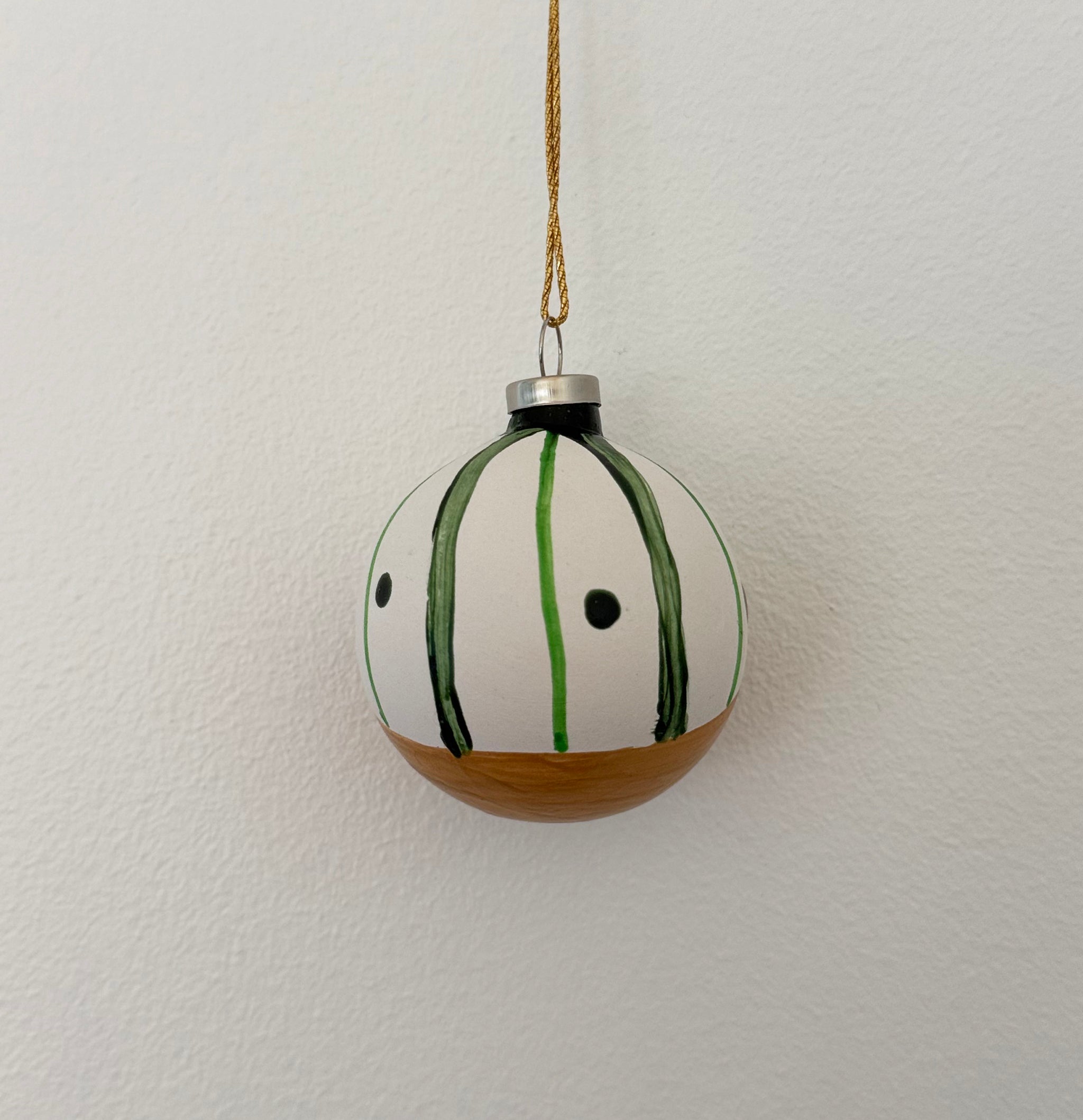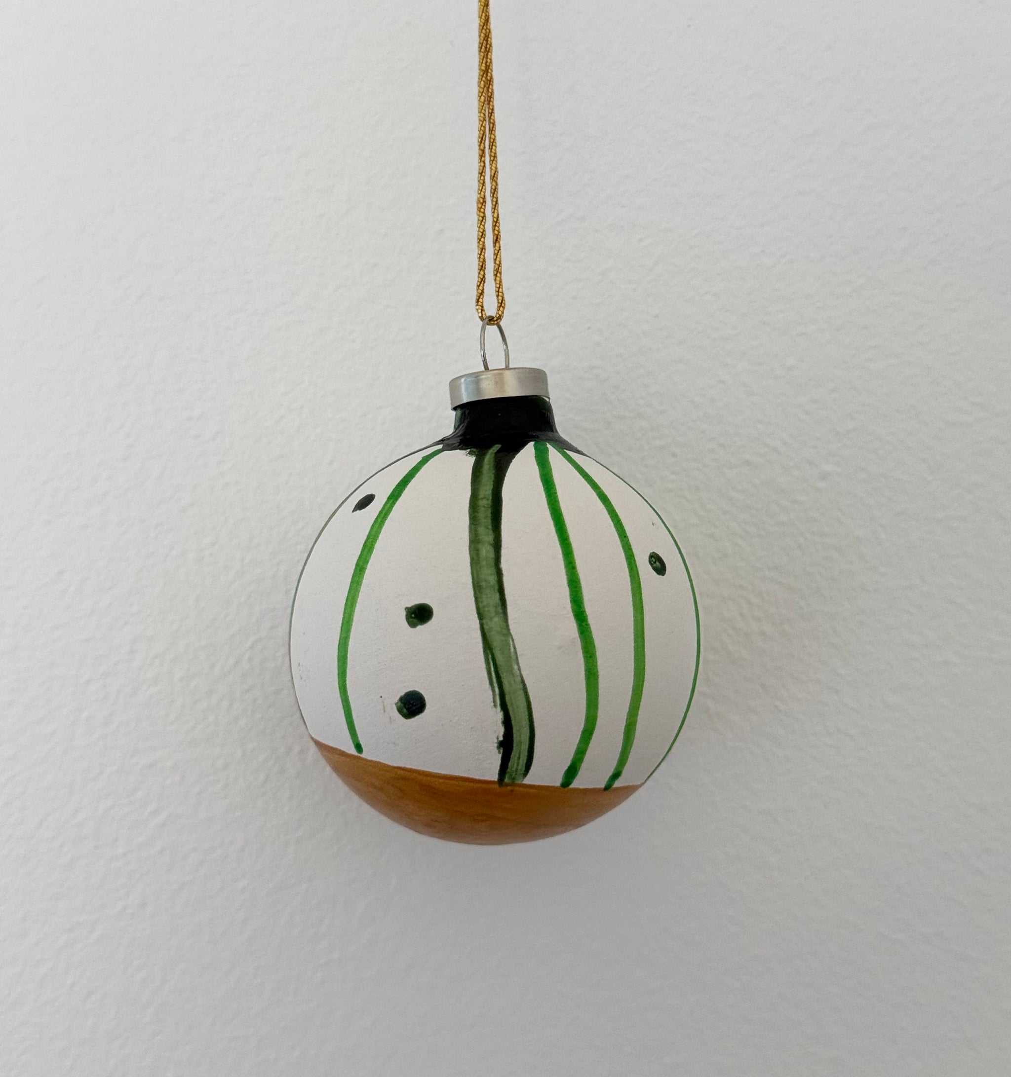 Pakken består af et sæt med 4 stk. håndmalet julekugler. Formen er rund og i keramik.