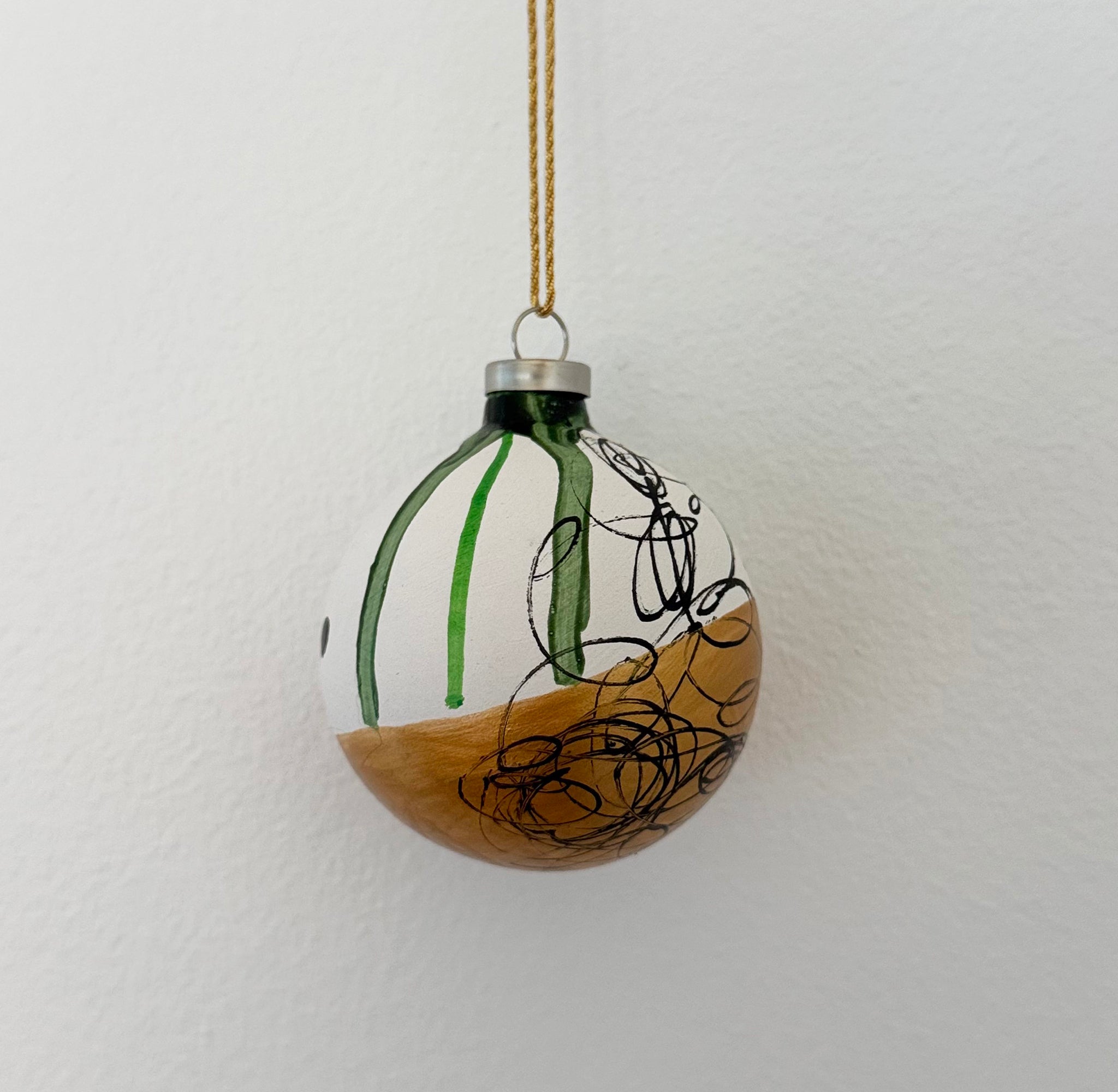 Moderne julekugler der gør dit juletræ til noget særligt. Farverne er klassiske med en bund farvede i guld og toppen grønne nuancer. Unikke små kunstværker til den traditionelle juleudsmykning