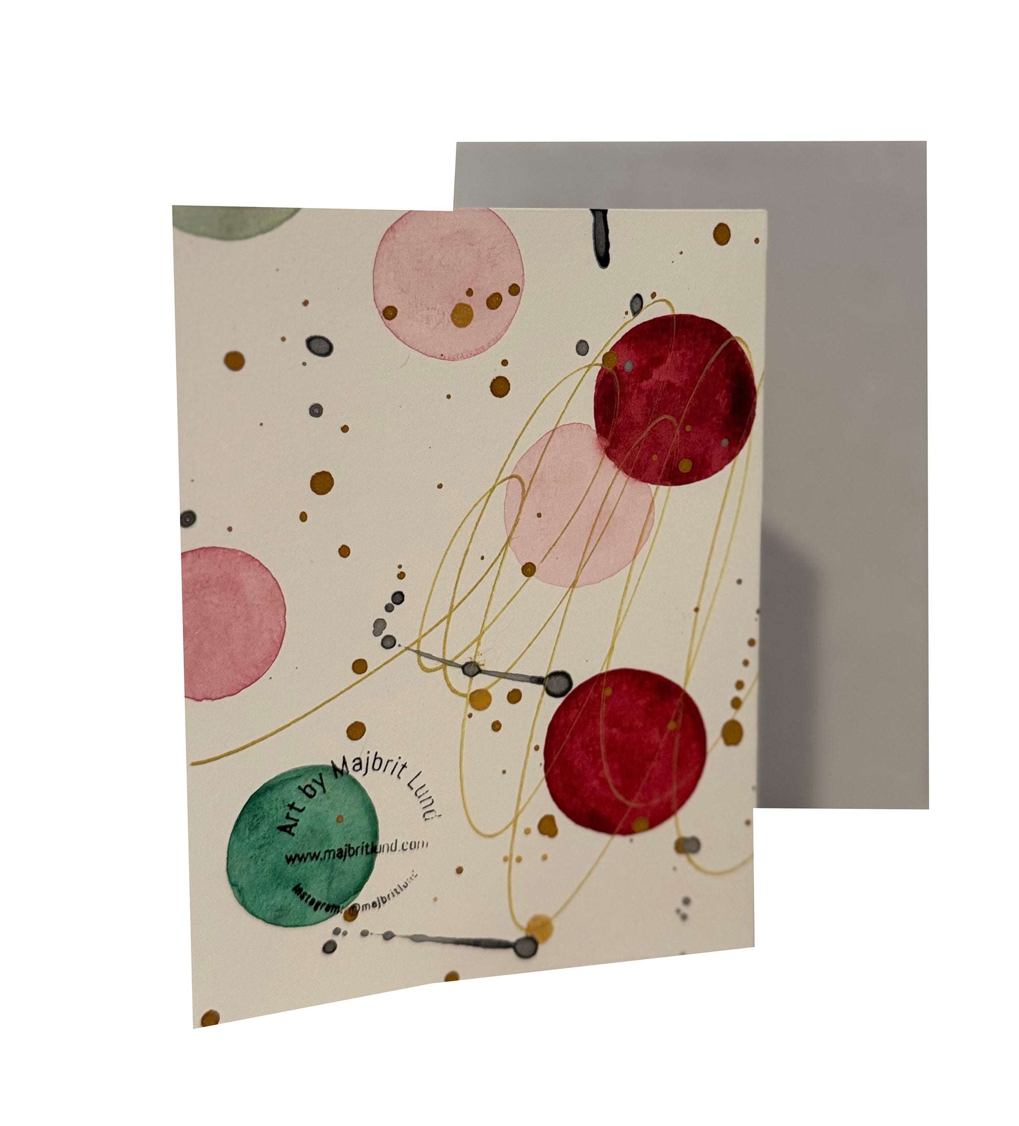 Julekort malet i hånden med akvarel på akvarelpapir.