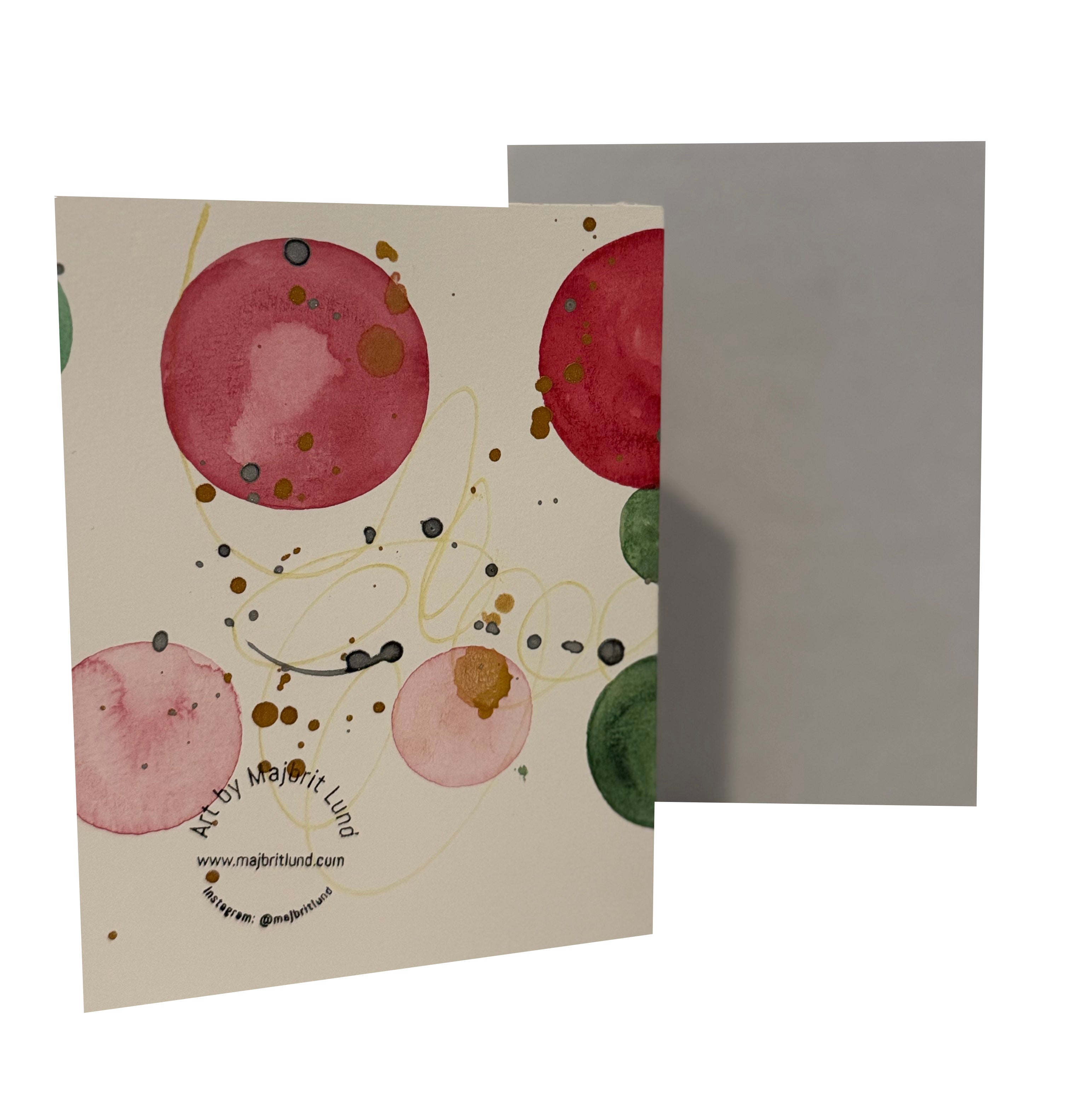 Julekort malet i hånden med akvarel på akvarelpapir.