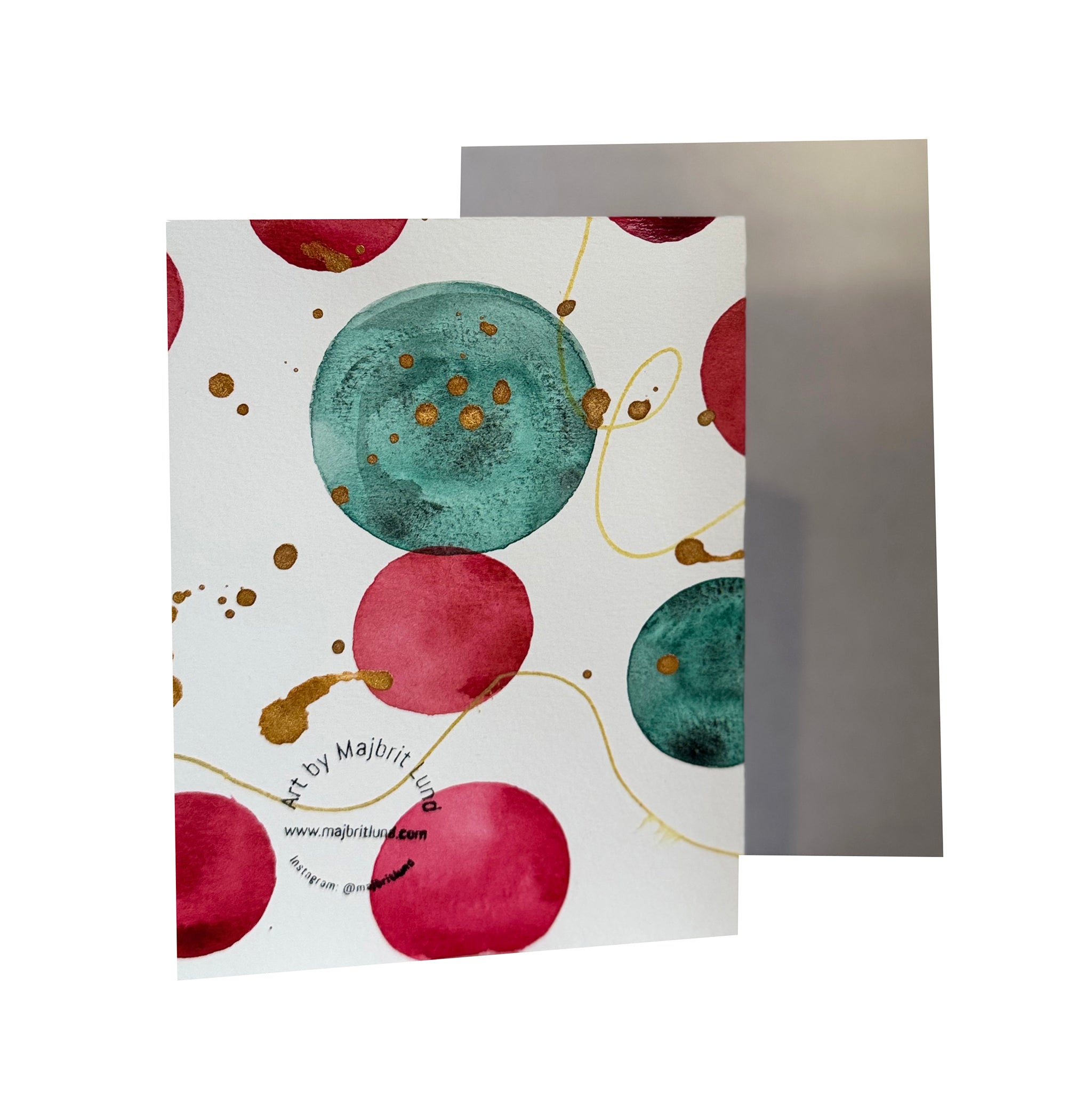 Julekort malet i hånden med akvarel på akvarelpapir.
