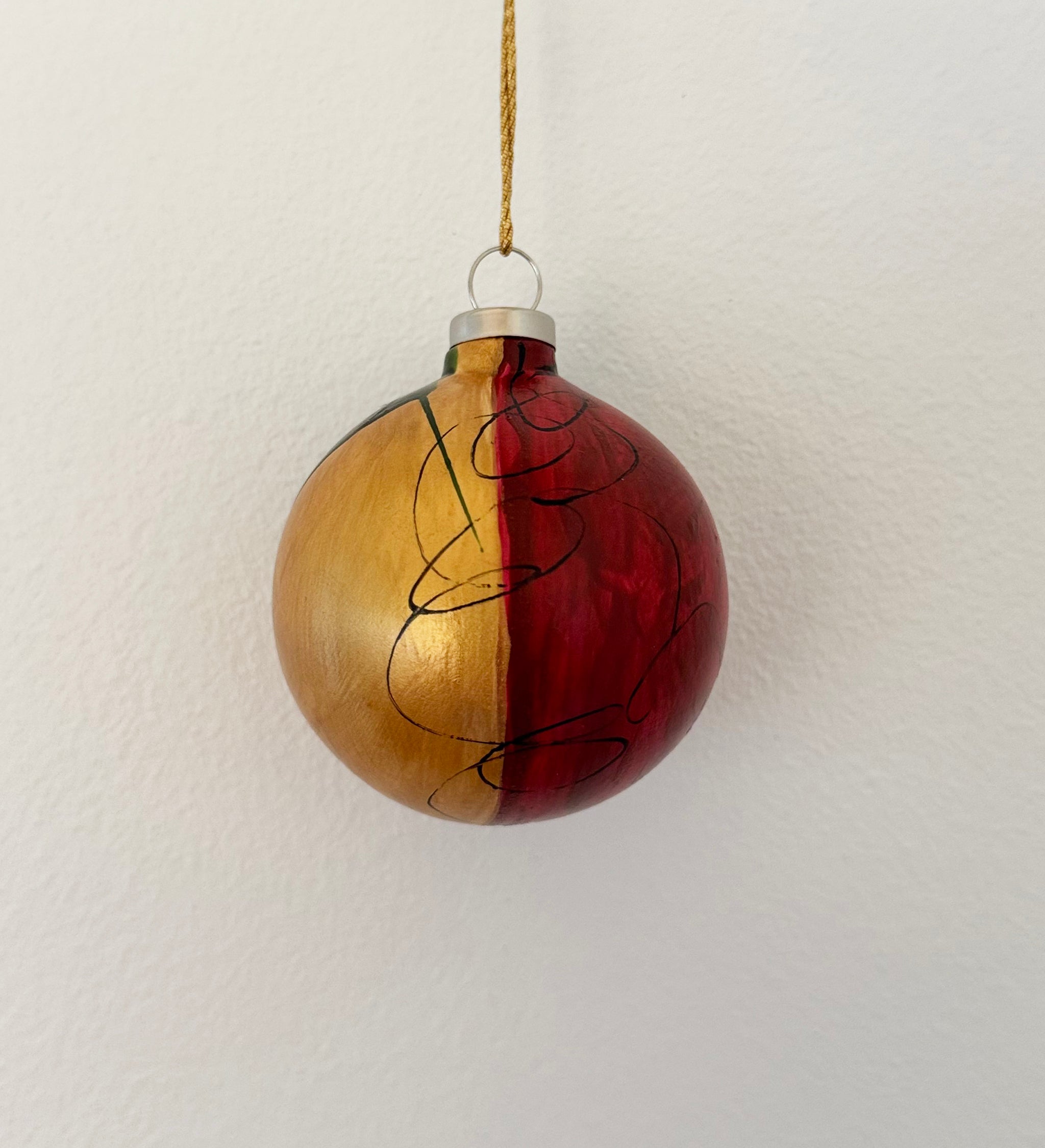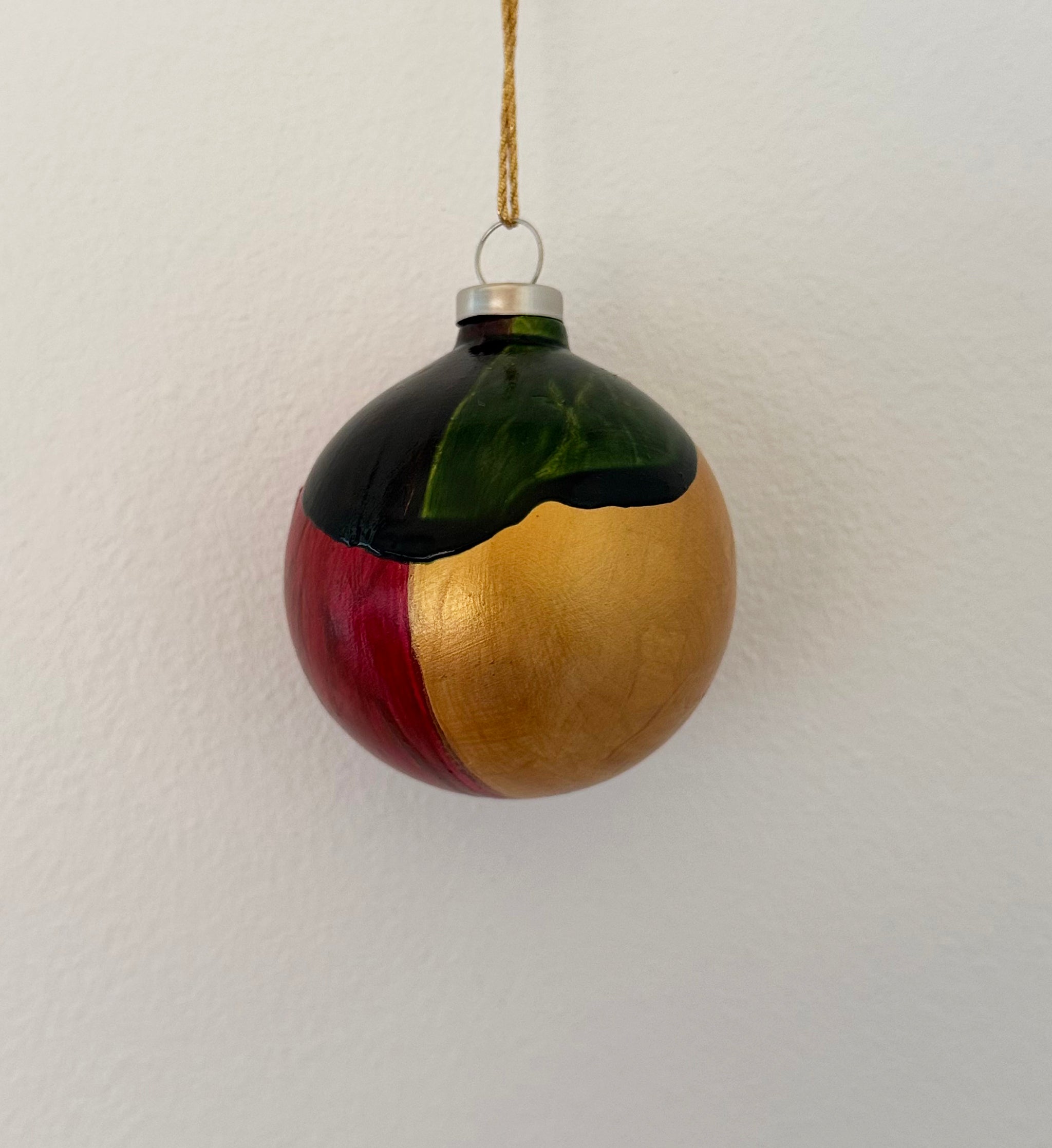 Julekugle der gør dit juletræ eller juleudsmykning til noget særligt i farvekombinationen dyb rød, grøn og guld.
