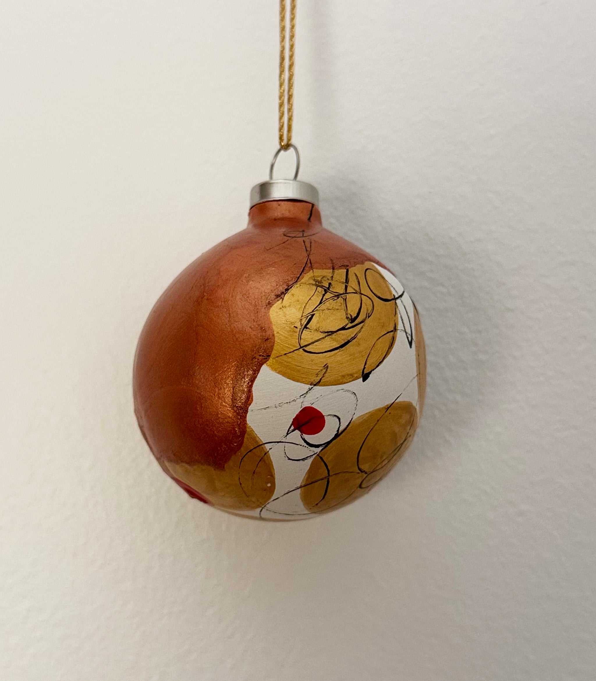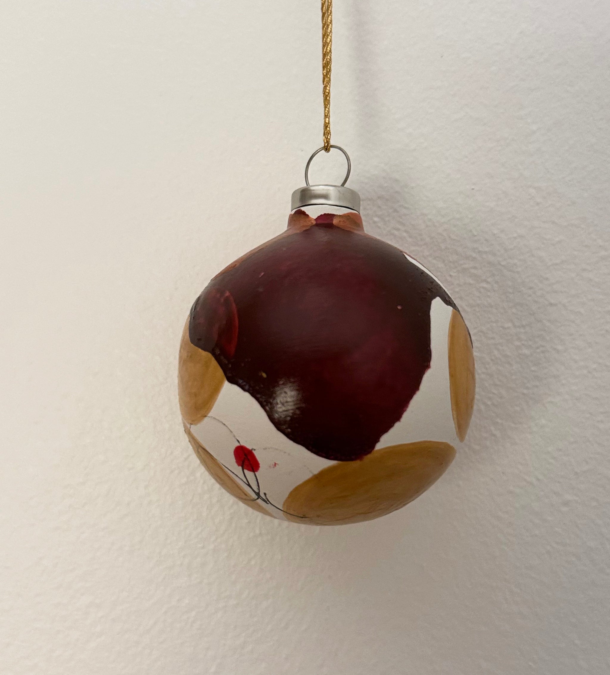 Gør dit juletræ eller juleudsmykning til noget særligt med en julekugle i farverne rød, bronze og guld.