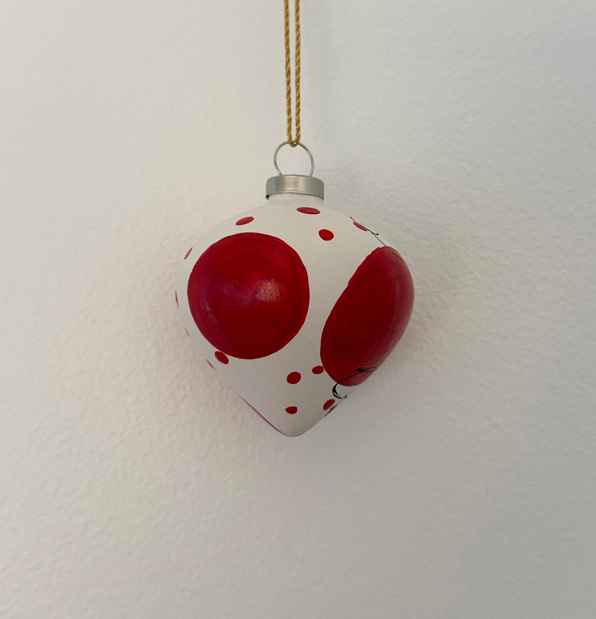 Pynt op i hjemmet med en moderne julekugle i røde nuancer og skab en varm og hyggelig atmosfære. Håndmalet unikt kunstværk til den traditionelle juleudsmykning.