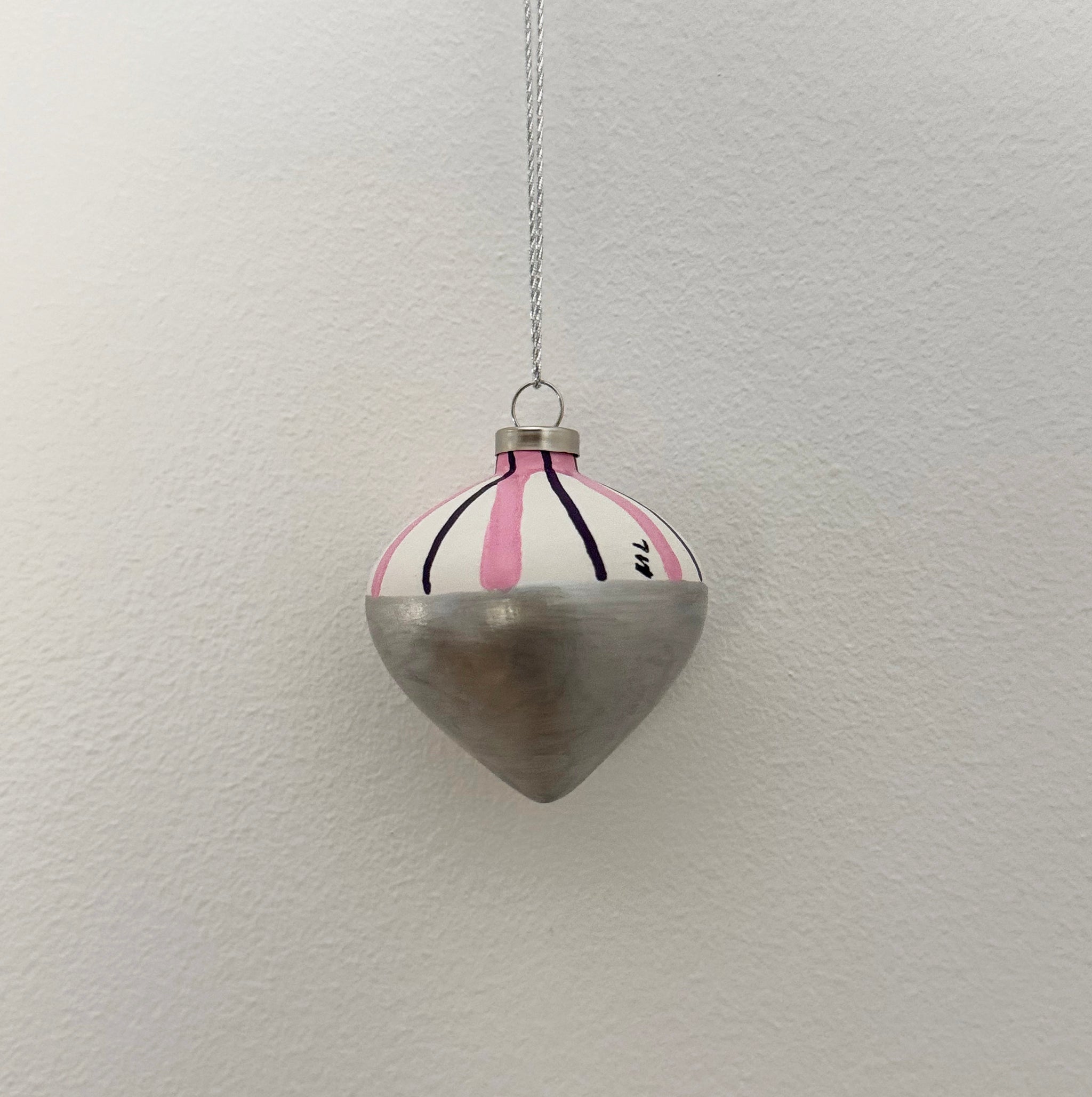 Hjerteformet julekugle i sølv og trendy pink. Unik julekugle malet i hånden.