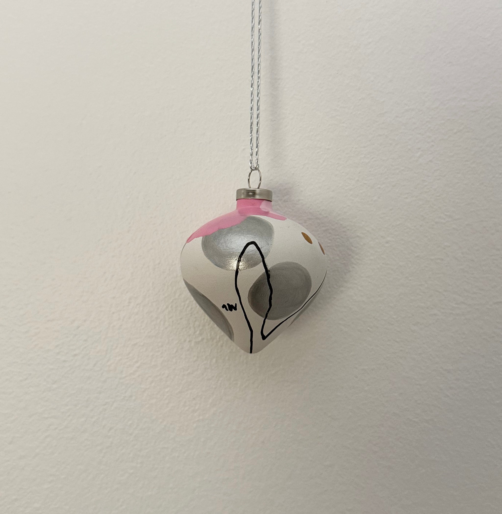 Hjerteformet julekugle i sølv trendy pink. Unik julekugle malet i hånden.