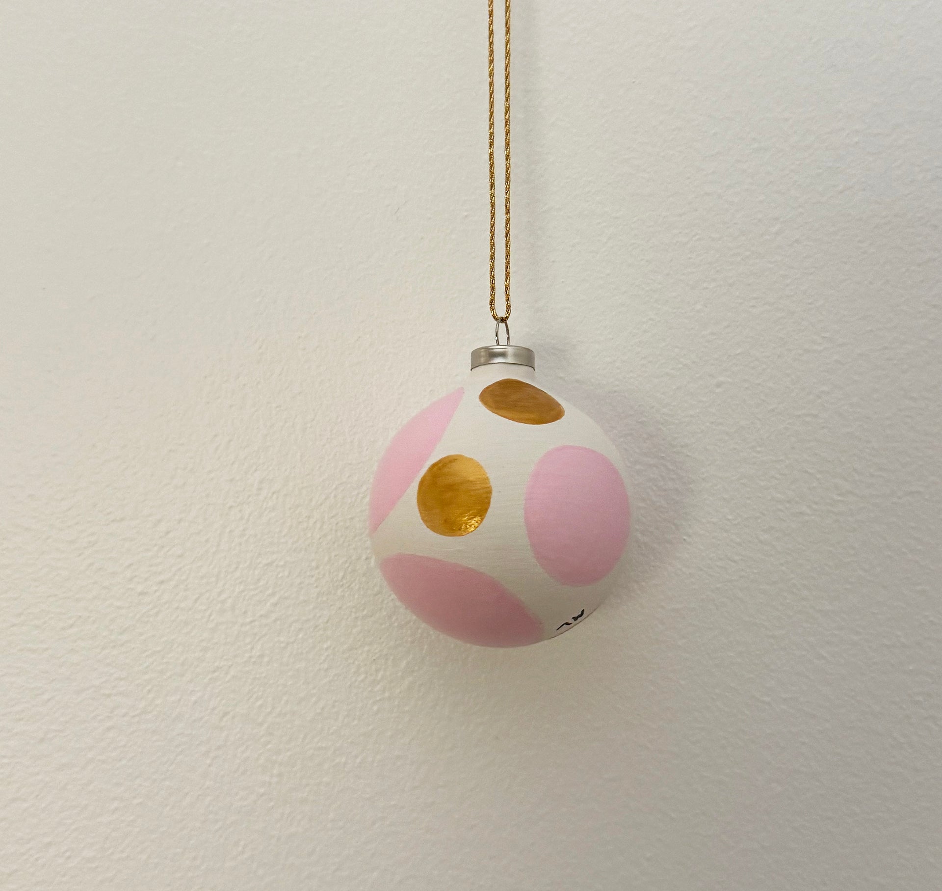 Rund julekugle i guld og trendy pink. Unik julekugle malet i hånden.