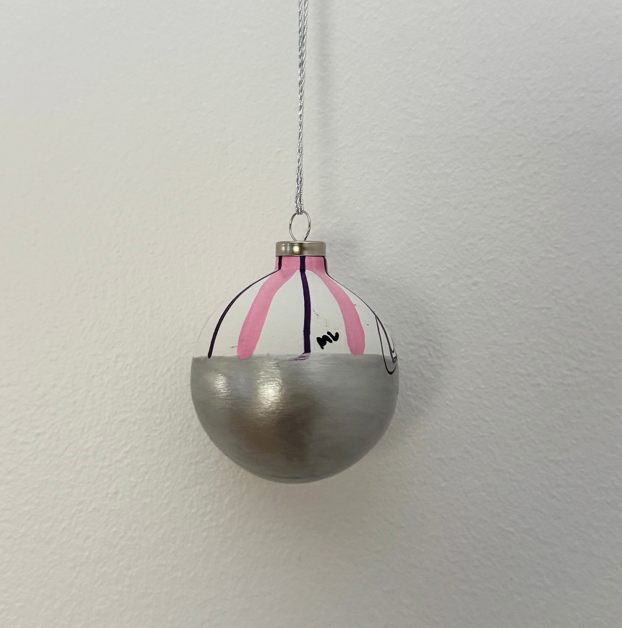 Rund julekugle i sølv og trendy pink. Unik julekugle malet i hånden.