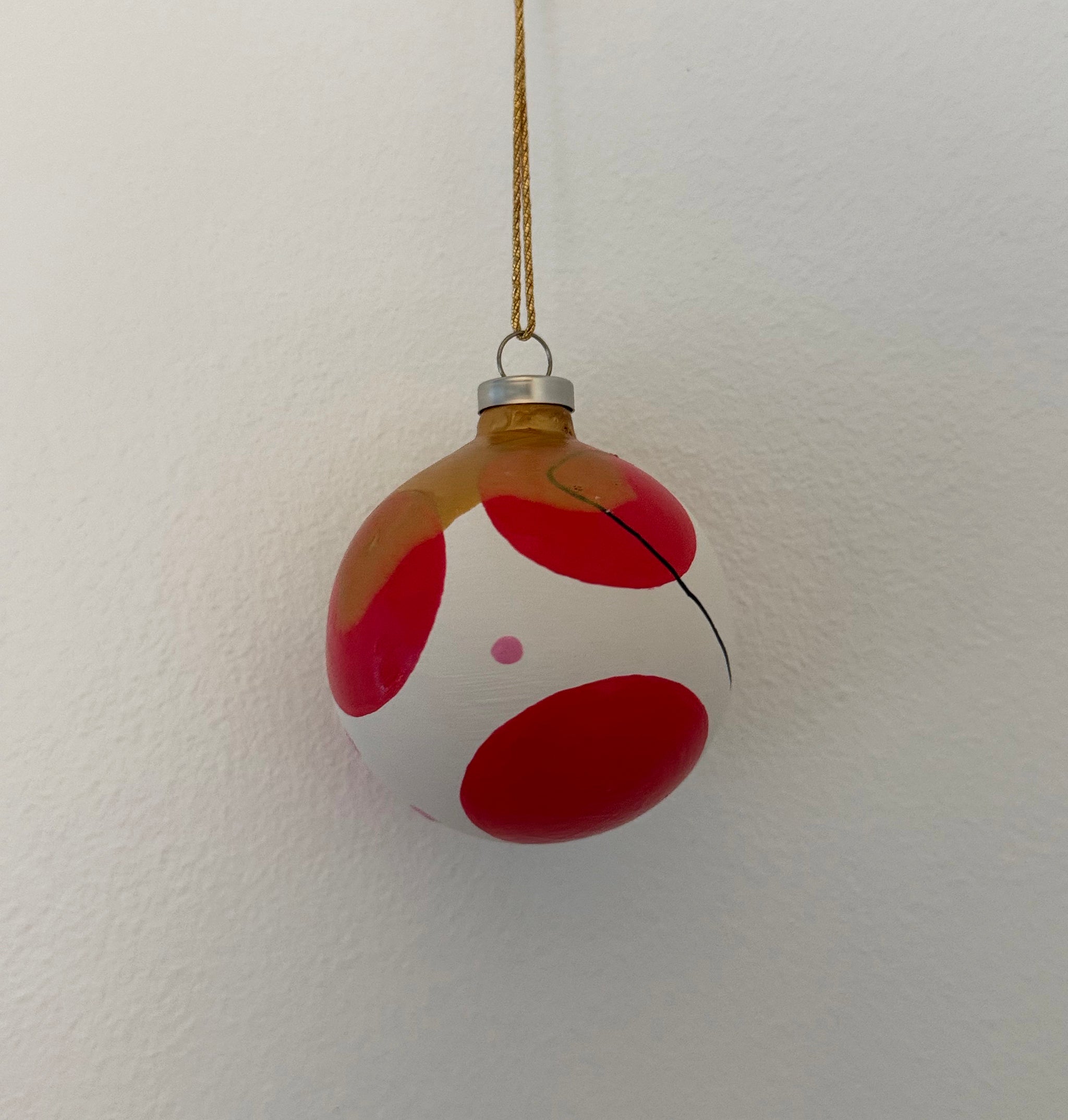 Pakken består af et sæt med 4 stk. håndmalet julekugler. Formen er rund og i lertøj.