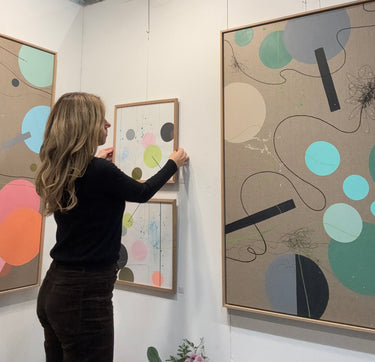 Jeg maler abstrakt og moderne og arbejder med former der er runde og firkantet.