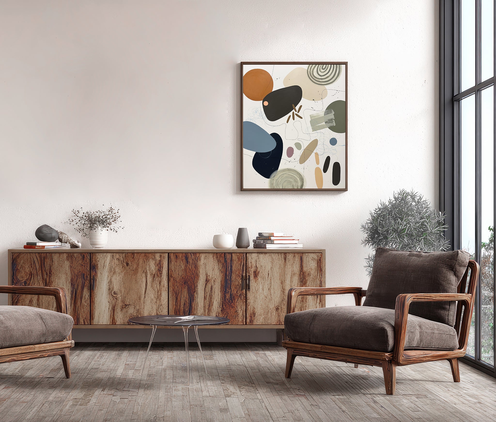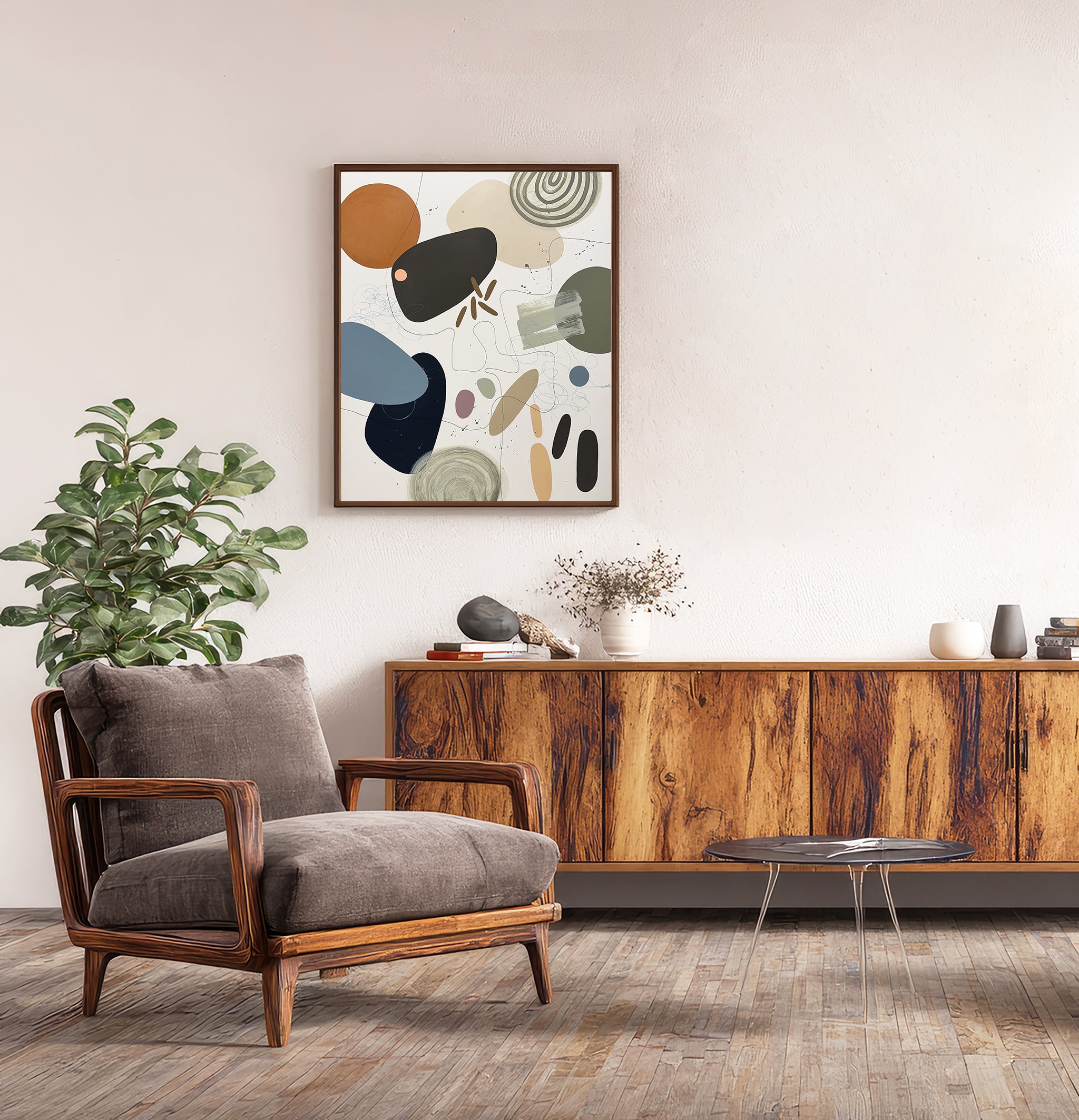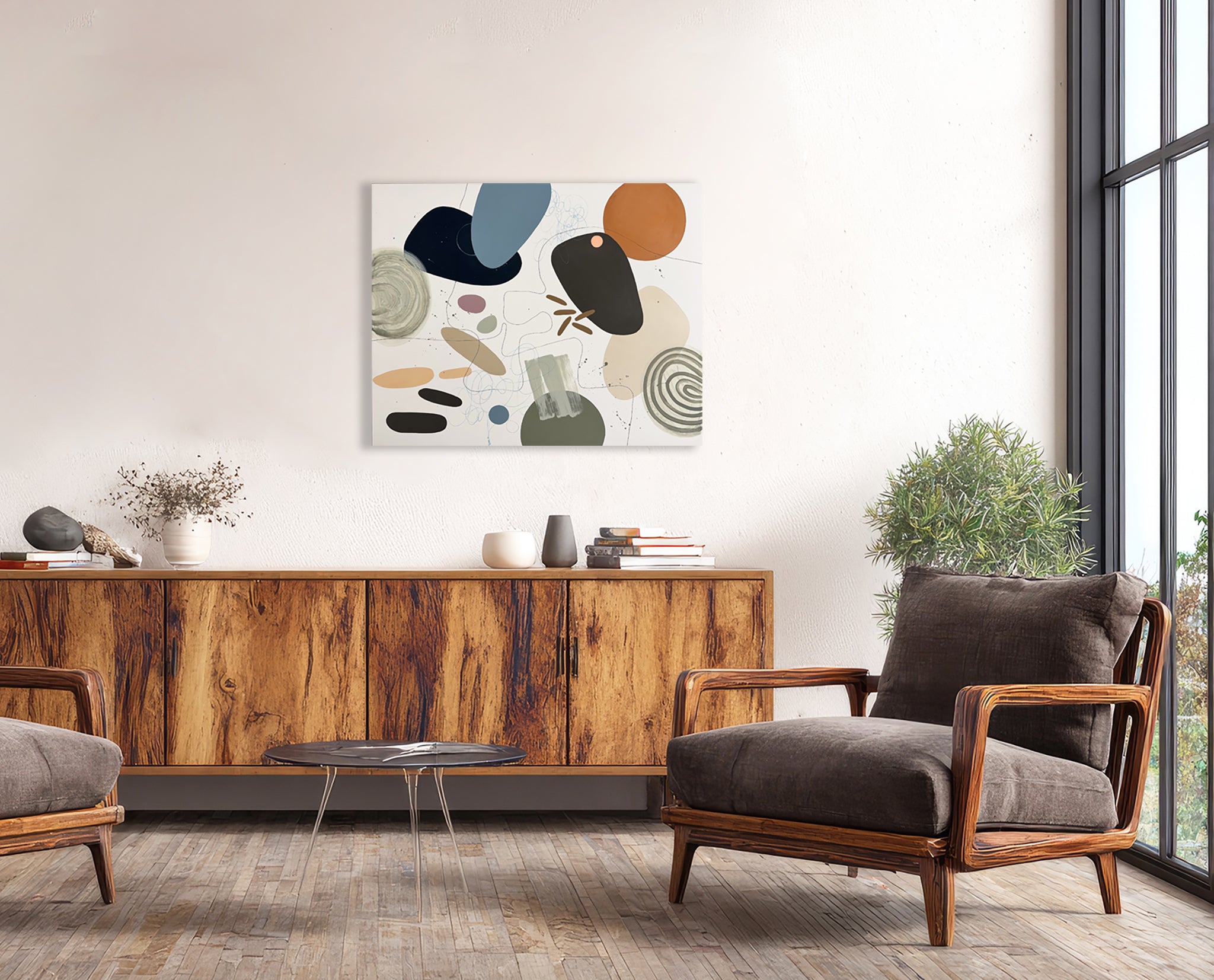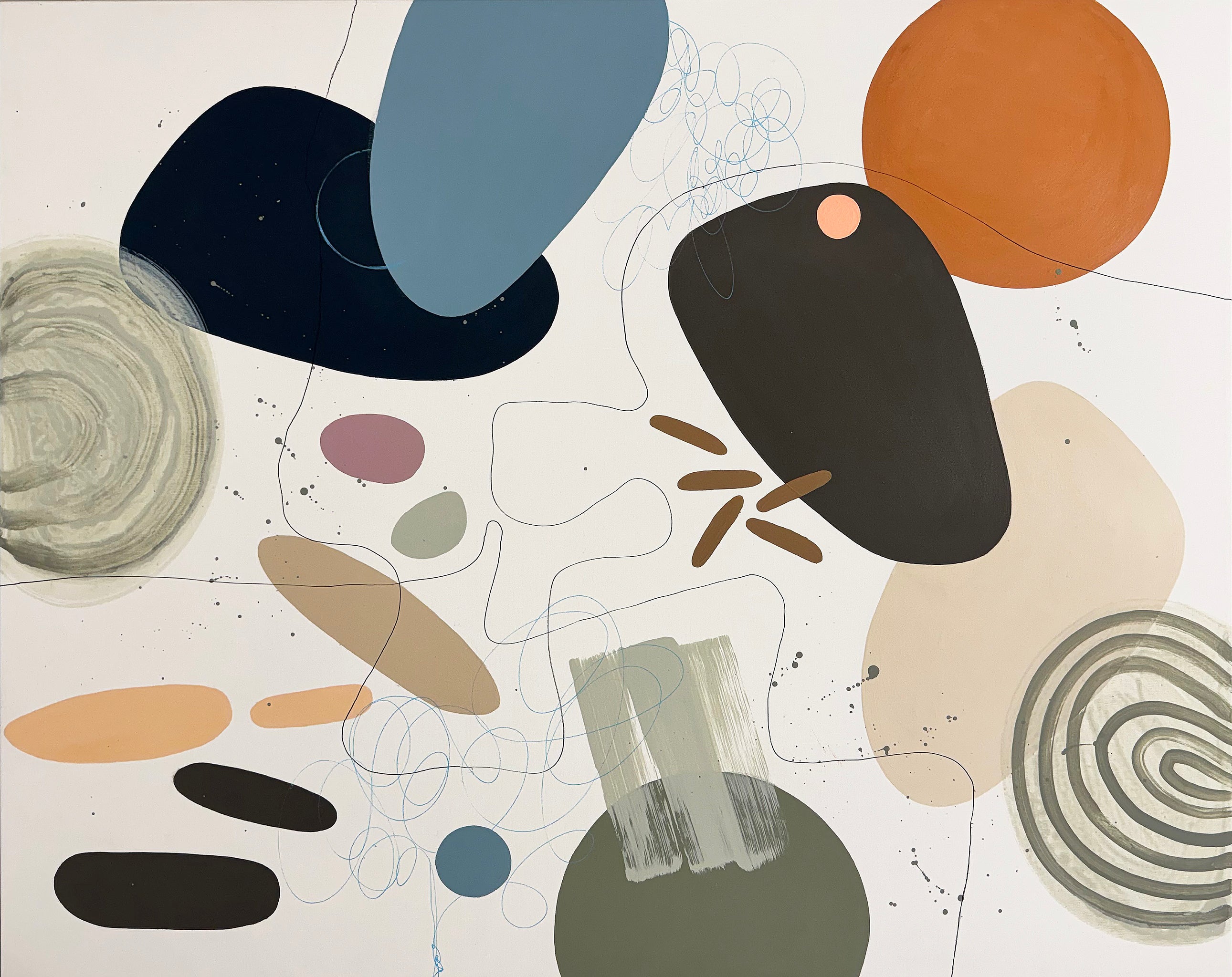 Moderne maleri med abstrakte elementer, der skaber et glimt af et uendeligt univers. Maleriet måler 80x100 og kan vendes vandret og lodret og kan give din indretning flere muligheder. Titlen på maleriet "A piece of something larger"