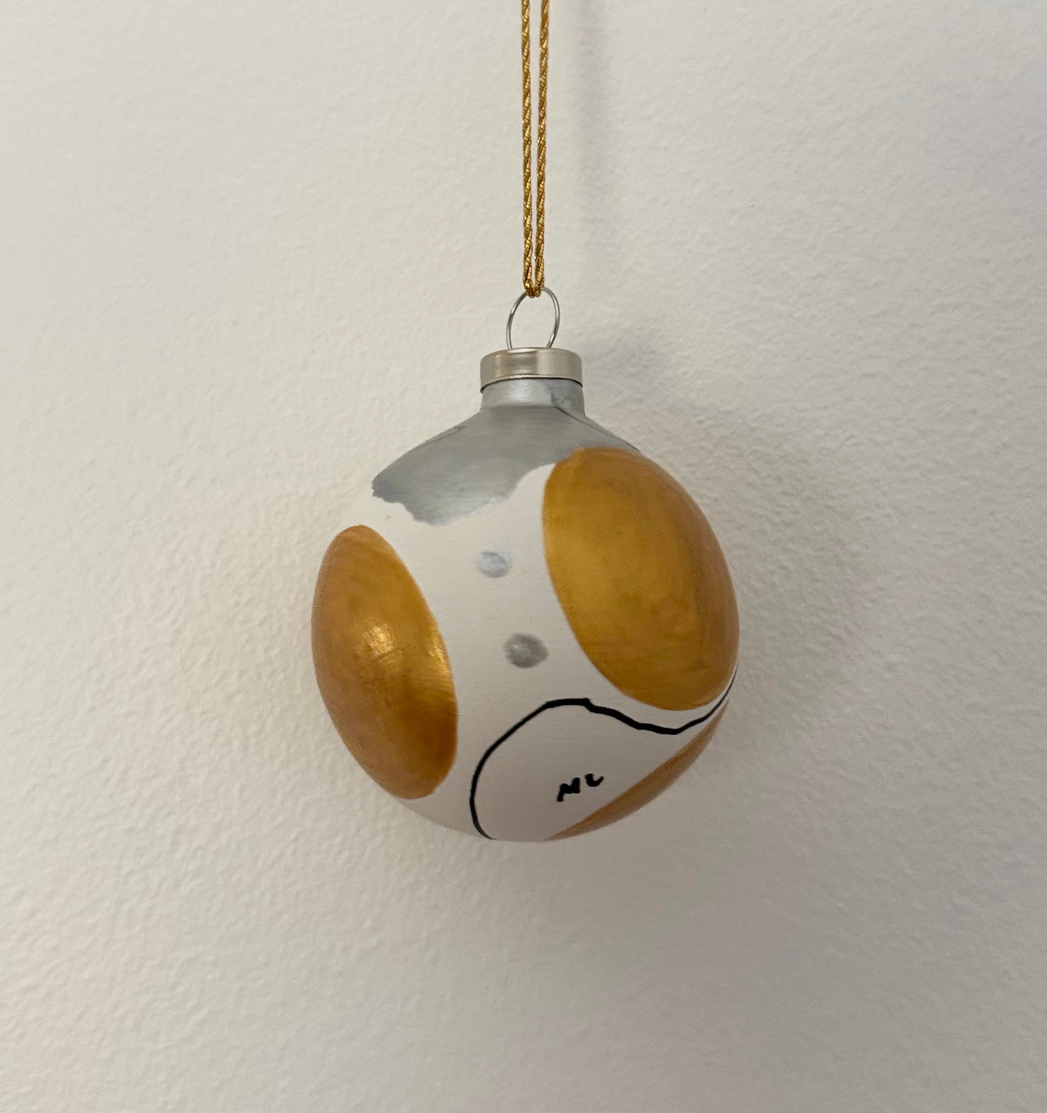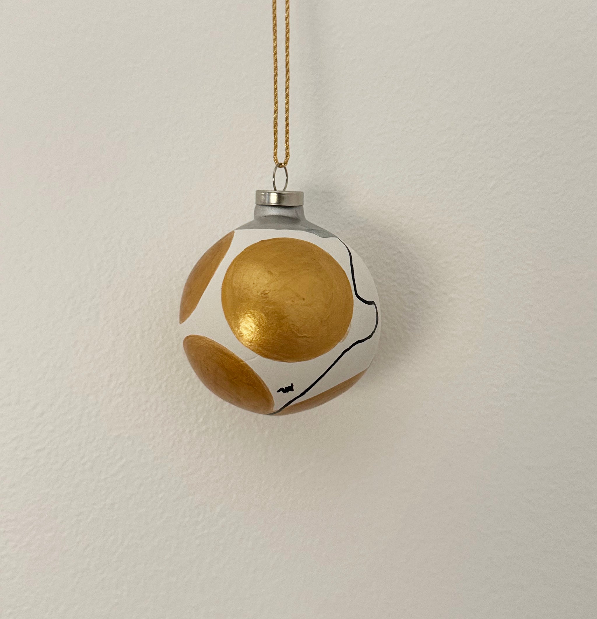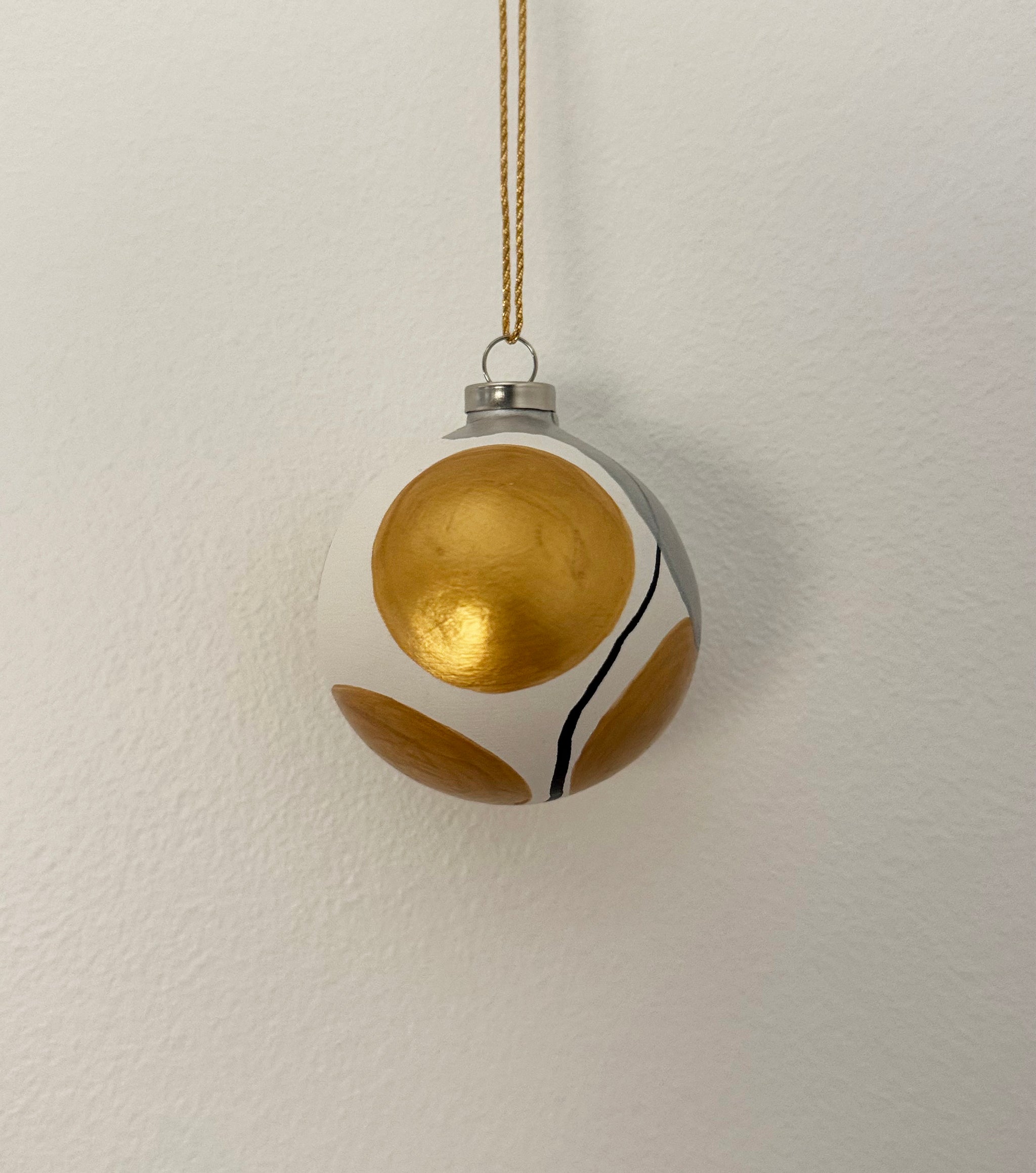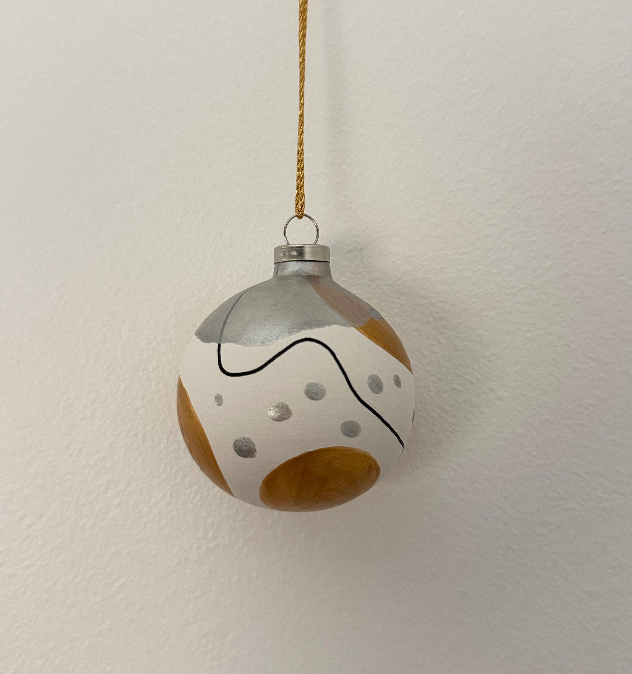 Skab magi og julestemning med moderne julekugler i guld og sølv. Pakken består af et sæt med 4 stk. håndmalet julekugler. Formen er rund og i lertøj. Små unikke kunstværker. Nr. 25
