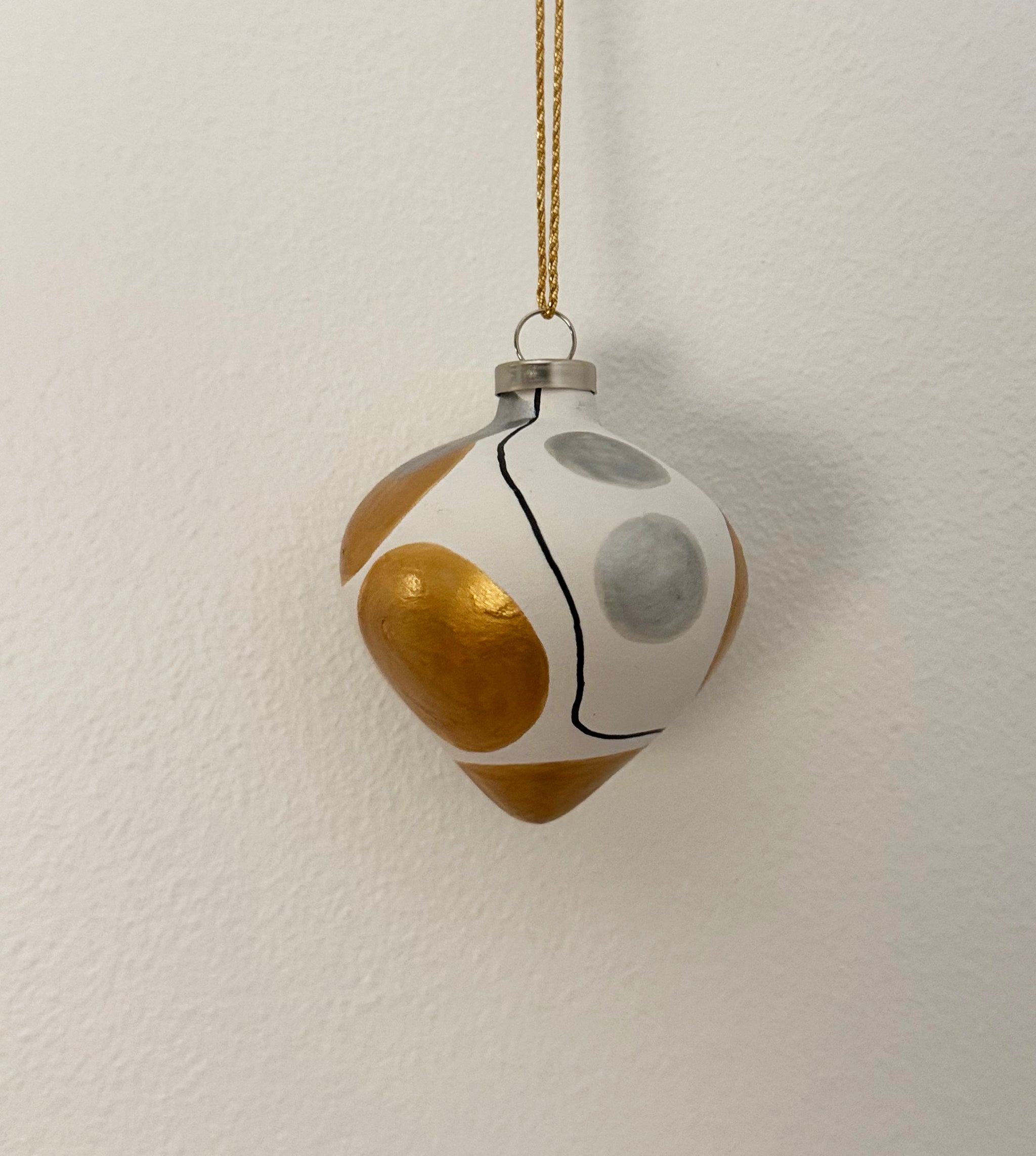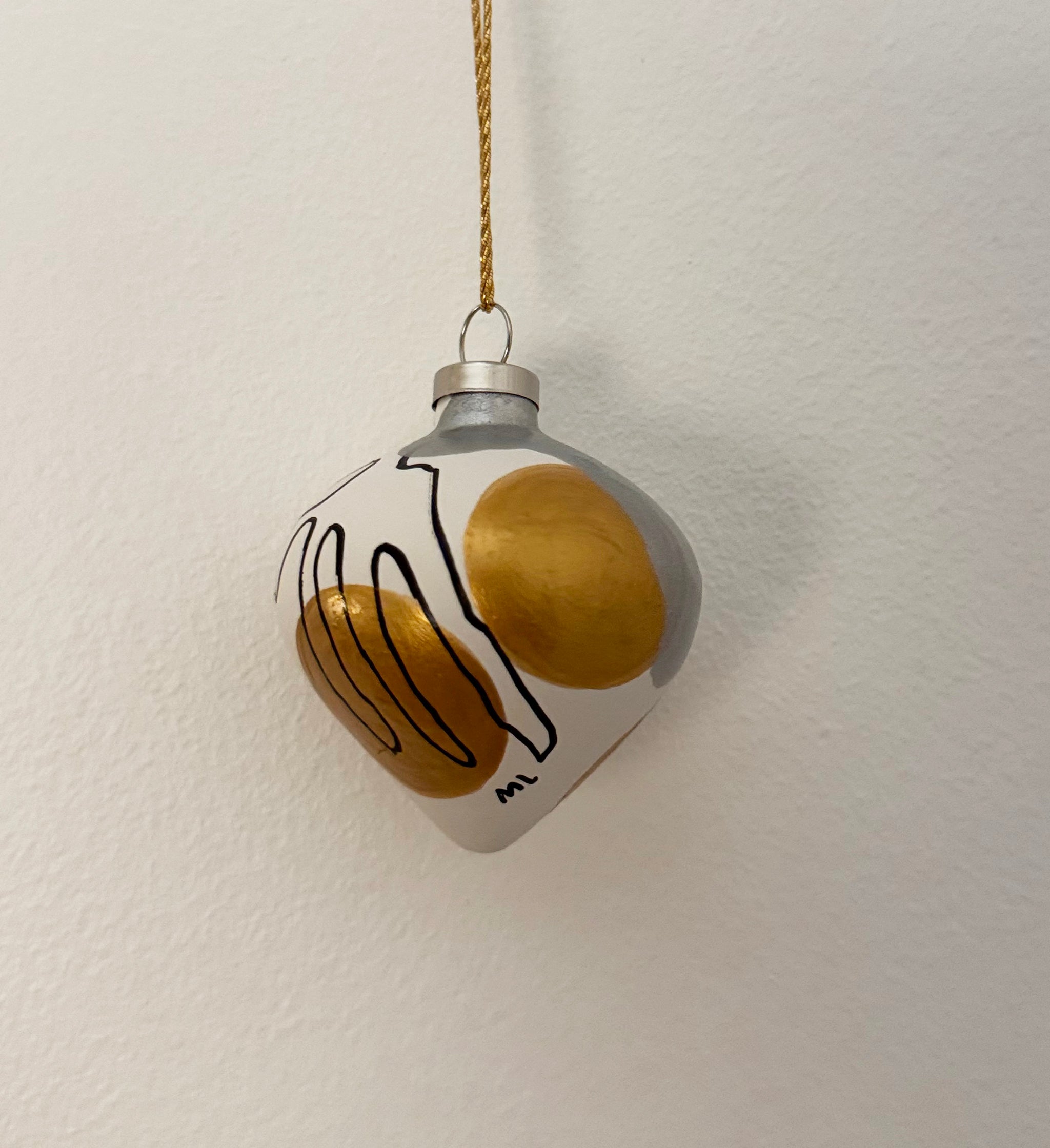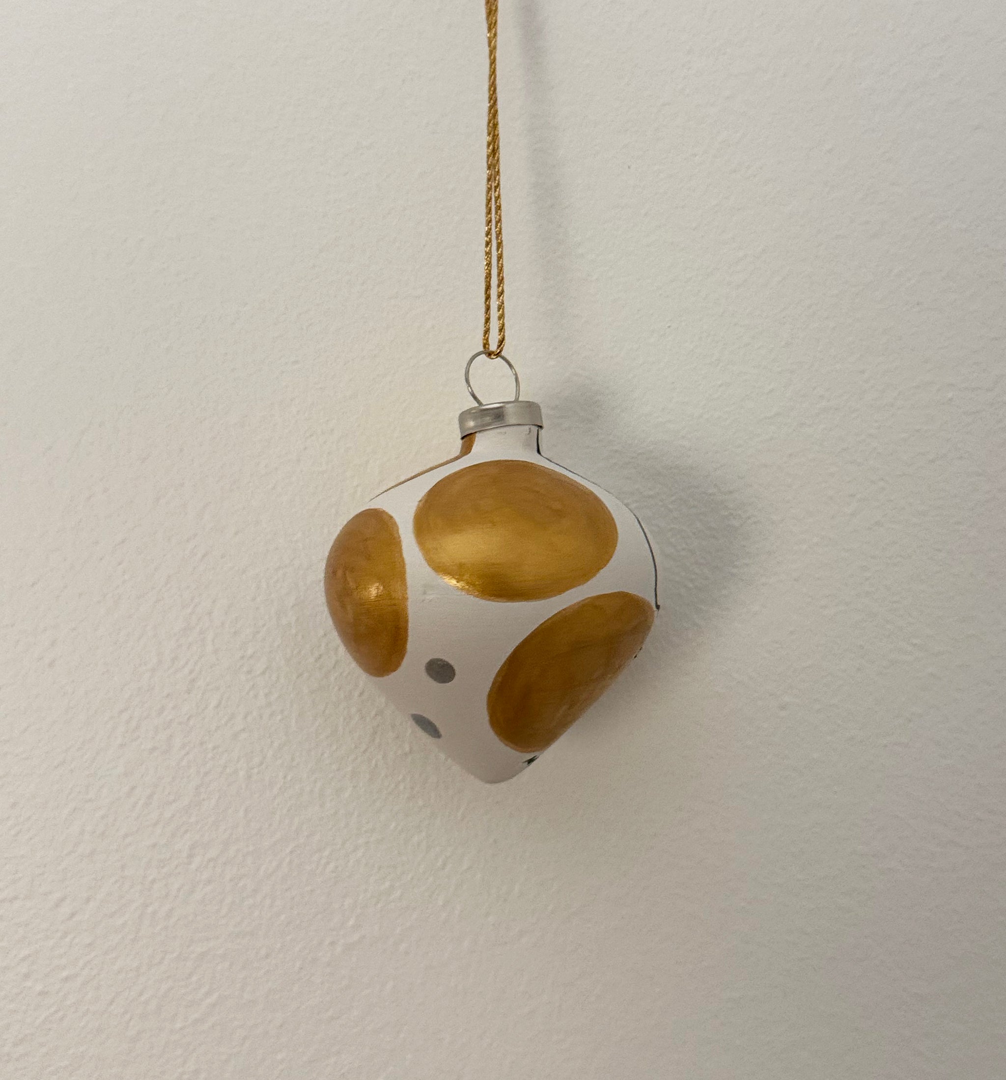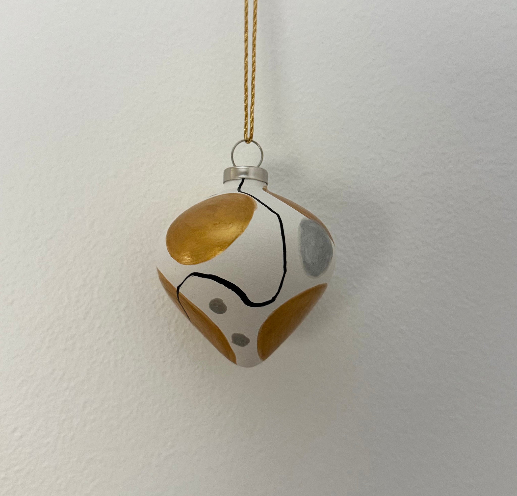 Skab magi og julestemning med moderne julekugler i guld og sølv. Hjerteformet små unikke kunstværker i lertøj. Pakken består af et sæt med 4 stk. håndmalet julekugler. Nr. 26