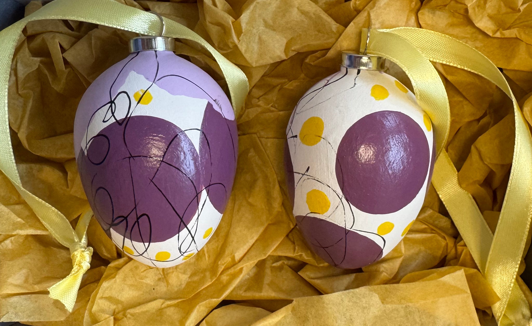 Pakken består af et sæt med 2 stk. håndmalet påskeæg